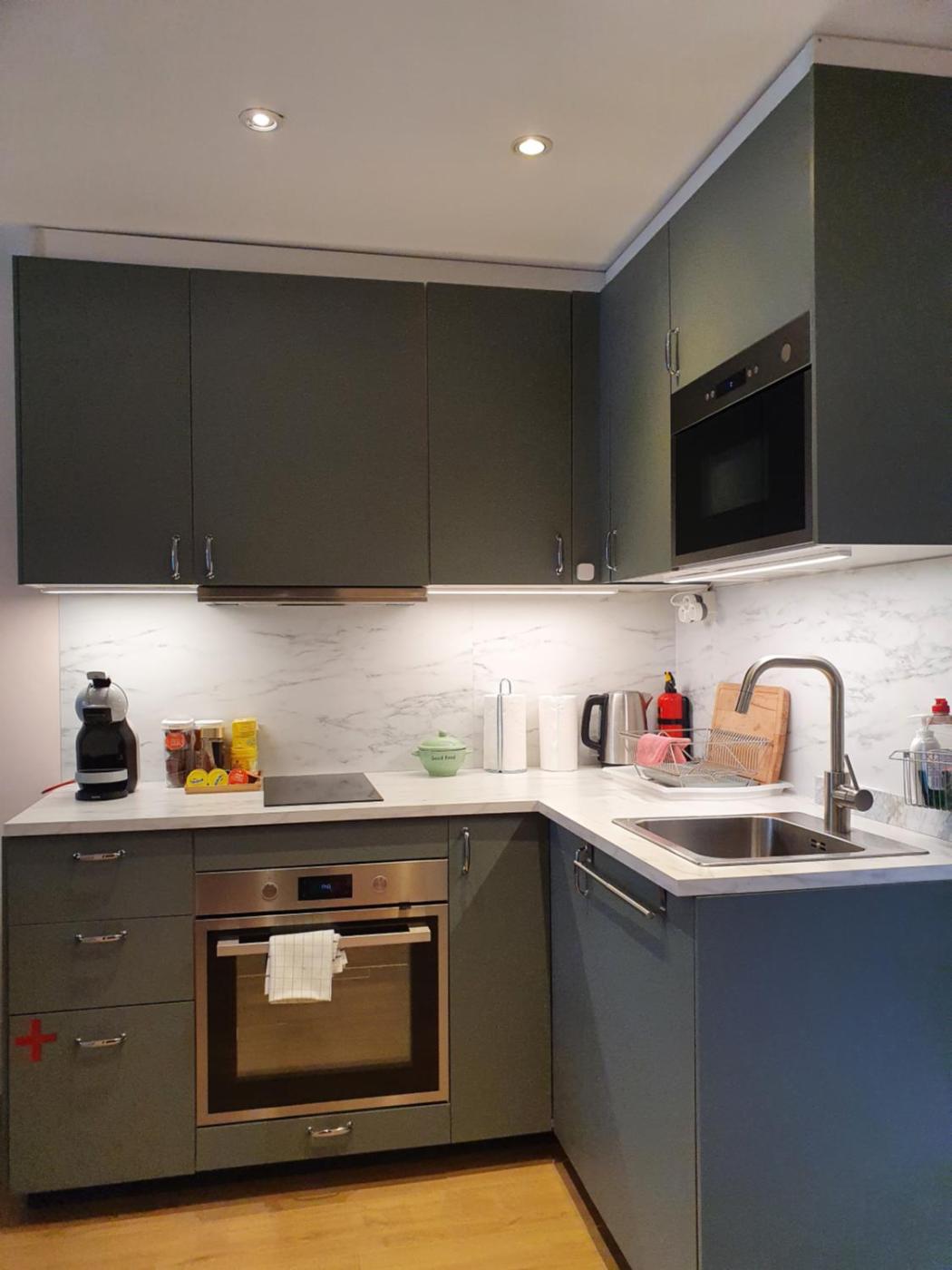 One-Bedroom Apartment. This apartment comes with 1 living room, 1 separate bedroom and 1 bathroom with a walk-in shower and free toiletries. The well-equipped kitchen features a stovetop, a refrigerator, an oven and a microwave. This apartment has a washing machine, a tea and coffee maker, flat-screen TV with streaming services, as well as chocolate for guests. The unit has 3 beds.