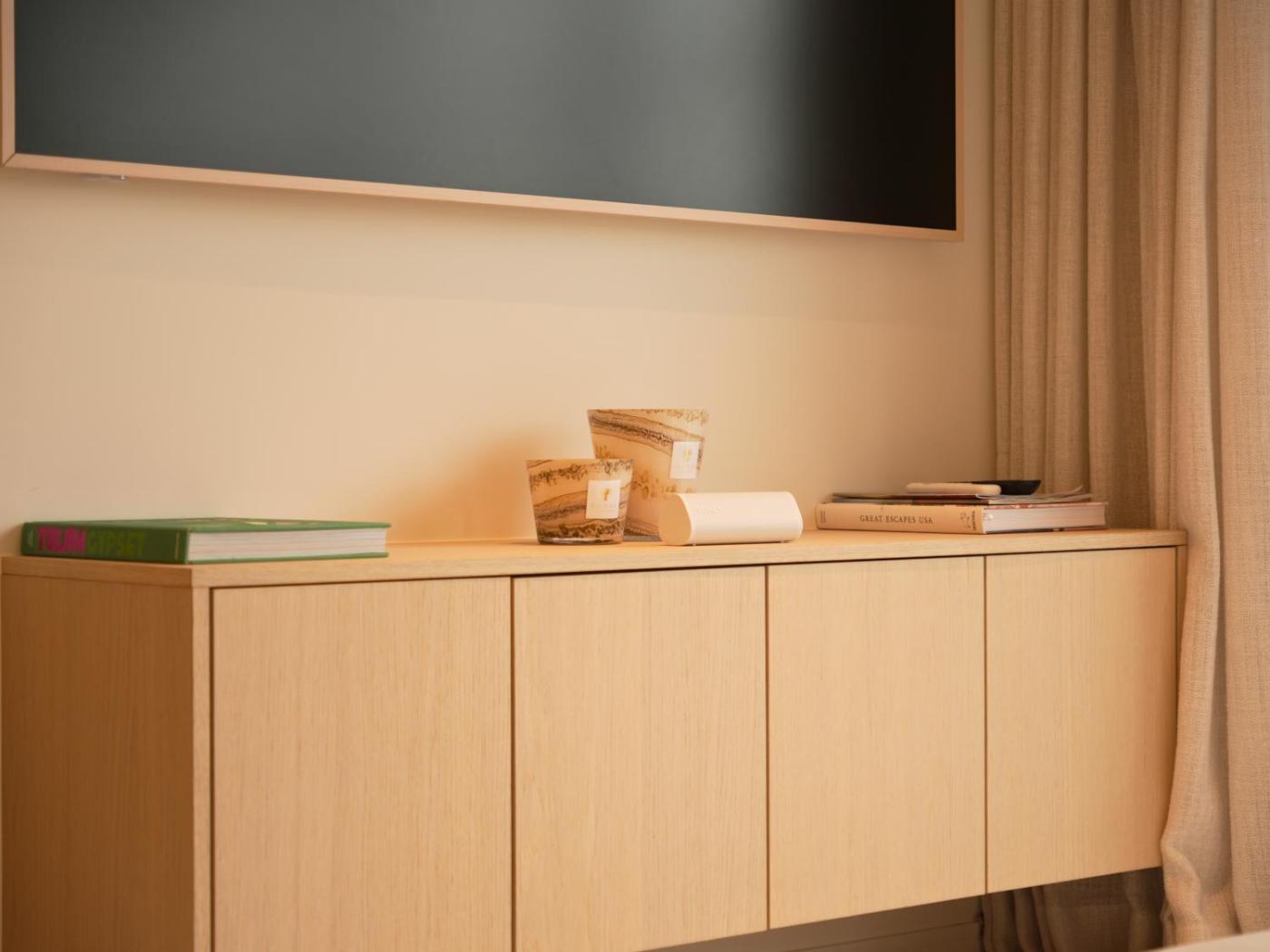 The spacious apartment features 2 bedrooms, 2 bathrooms, bed linen, towels, a flat-screen TV with streaming services, a dining area, a fully equipped kitchen, and a balcony with quiet street views. For added privacy, the accommodation has a private entrance and is protected by full-day security.